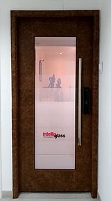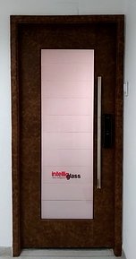 INTELIDOOR é um sistema exclusivo INTELLIGLASS. Aplicado a portas entrega total controla sobre a transparência e abertura de portas.